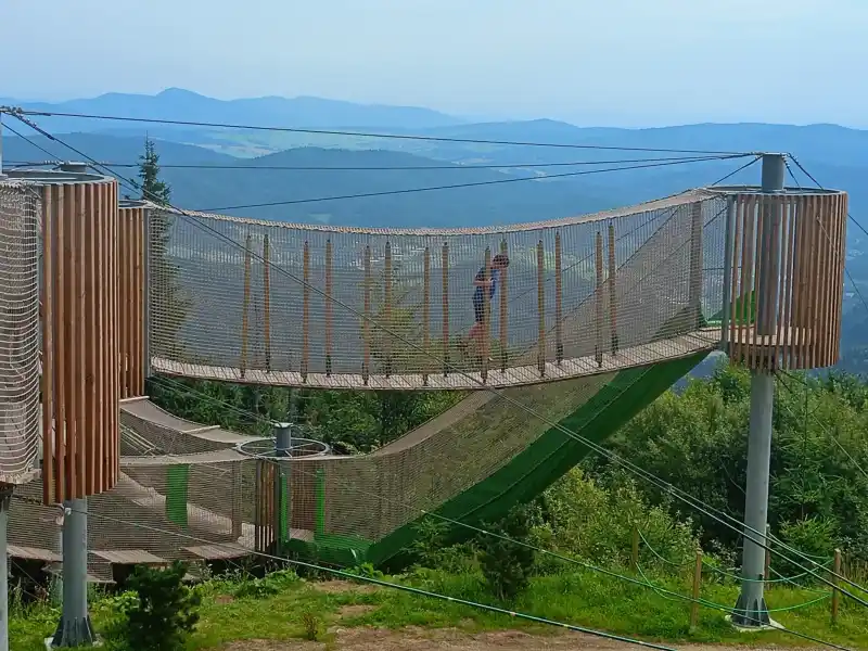 Kolej gondolowa wwozi turystów na wysokość 1114 m n.p.m., skąd rozciągają się niezapomniane widoki na całe Beskidy, a przy sprzyjającej pogodzie – na Tatry. To obowiązkowy punkt dla miłośników górskich panoram i aktywnego wypoczynku.