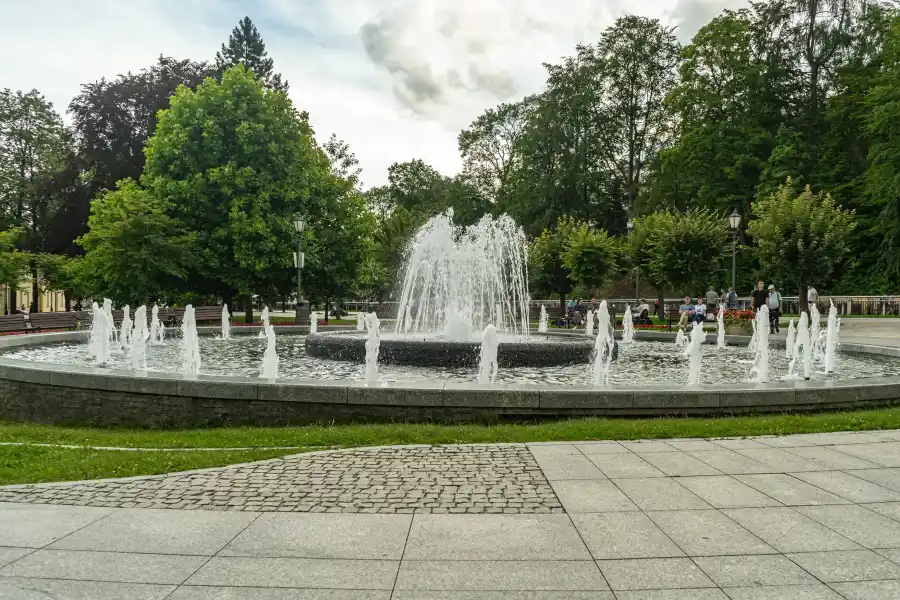 Każda pora jest dobra na spacer po deptaku, ale szczególnie pięknie jest tu wieczorem, gdy uzdrowisko jest oświetlone i nabiera magicznego uroku. Wtedy koniecznie postarajcie się znaleźć koło fontanny o pełnej godzinie. Właśnie wtedy zaczyna się darmowy, piętnastominutowy spektakl tańczących fontann .