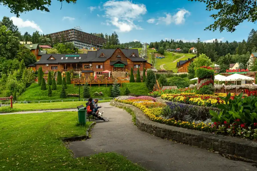 Na polanie znajdziesz instalacje świetlne, kwiatowe rzeźby, ławki widokowe oraz przestrzeń do spokojnych spacerów. To idealne miejsce na chwilę wytchnienia po wjeździe kolejką, a także na rodzinne zdjęcia. Polana szybko stała się ulubionym punktem dla turystów szukających atrakcji bez tłumów i z piękną, parkową atmosferą.